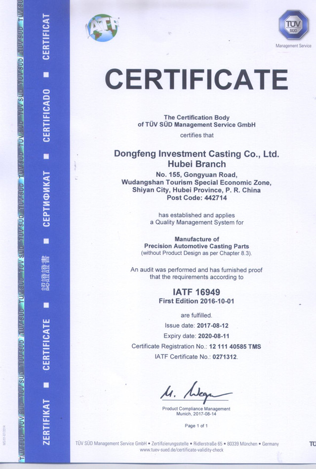 2017年通過IATF 16949:2016體系認證